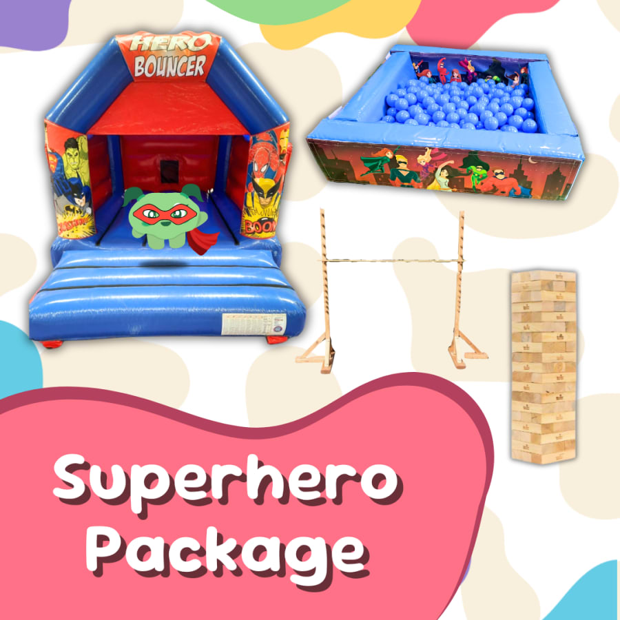 This package is designed for all superhero fans! Do you have a little superhero in your house? Is it Spiderman, Superman, the Hulk or Batman who is the favourite? This castle has them all, alongside a range of male and female cartoon superheroes on the ball pool.