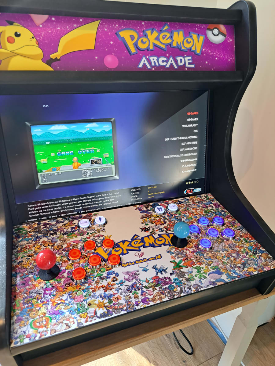 Step back in time and relive the excitement of retro gaming with our Arcade Machine, perfect for bringing the full arcade experience to your home, office, or event! With eye-catching Pokémon artwork and an impressive collection of 8,000 games, this tabletop arcade is a must-have for gamers of all ages.