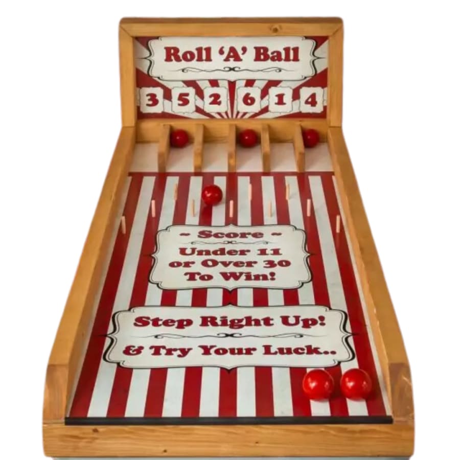 Challenge your skill and precision with Roll A Ball, a classic retro wooden tabletop game that’s trickier than it looks! Roll all six balls down the board and see where they finish—the aim is to score under 11 or over 30 to win. Can you master the perfect roll, or will luck decide your fate?