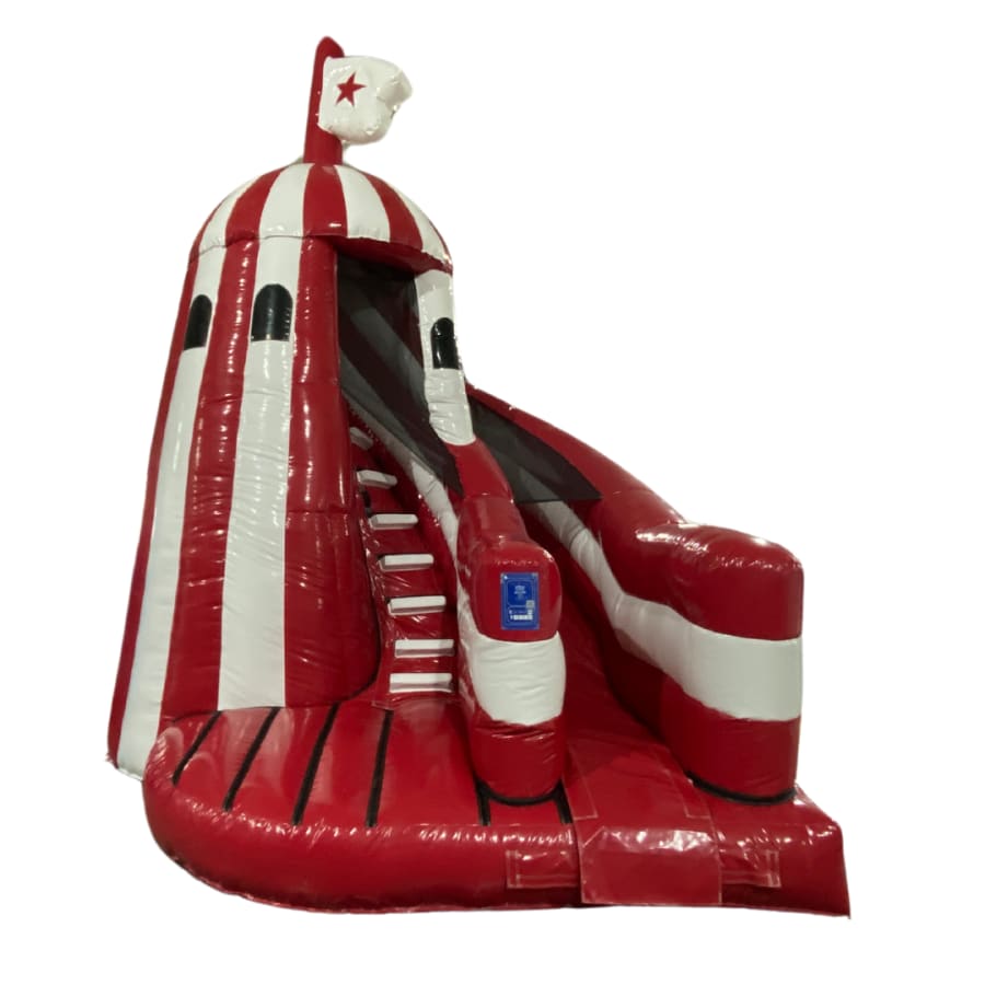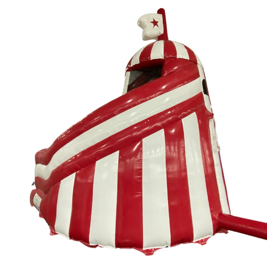 Make your event unforgettable with our show-stopping Helter Skelter Inflatable Slide! Standing at an impressive 18.5 feet tall, this vintage fairground-themed slide features iconic red and white spiral stripes that are sure to catch everyone’s eye. Kids and adults alike will love the excitement of climbing up the ladder and racing down the twisty, fun-filled slide. It’s the perfect attraction to add some classic fairground flair and create memories that will last long after the event is over!