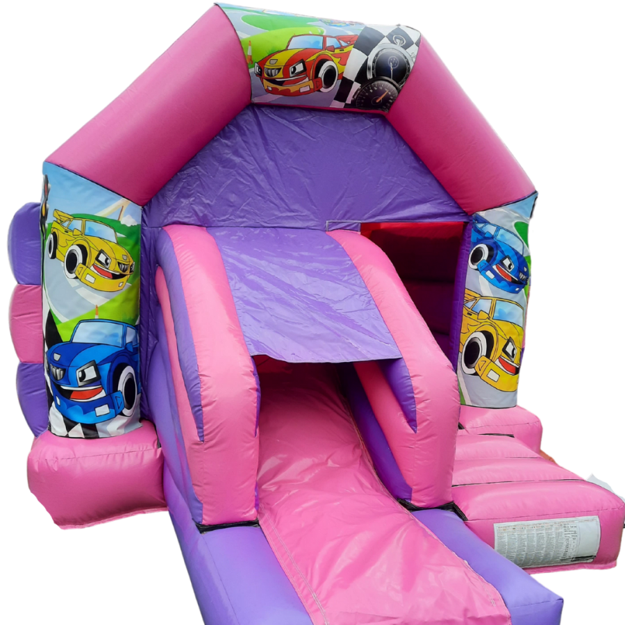 Rev up the fun with this high-speed, pink-themed racing car bouncy castle! Designed for children who love the thrill of racing, this inflatable features vibrant racing car artwork and a fun slide at the front, adding an extra level of excitement to any event. Perfect for energetic kids who can’t wait to bounce and race to the finish line!