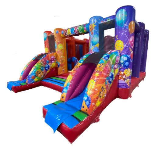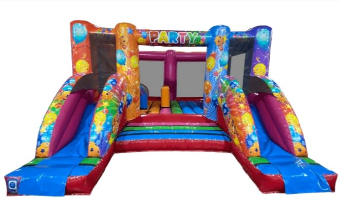 Introducing the bold and brilliant Party Double Slide Activity Castle — the ultimate upgrade for any celebration! With two exciting slides (one on each side), a generous bouncing area, and fun obstacles throughout, this action-packed castle offers hours of entertainment for children and adults alike. Larger than a standard bouncy castle, it comfortably fits more users and brings that extra “wow” factor to any party. Double the slide, double the fun!