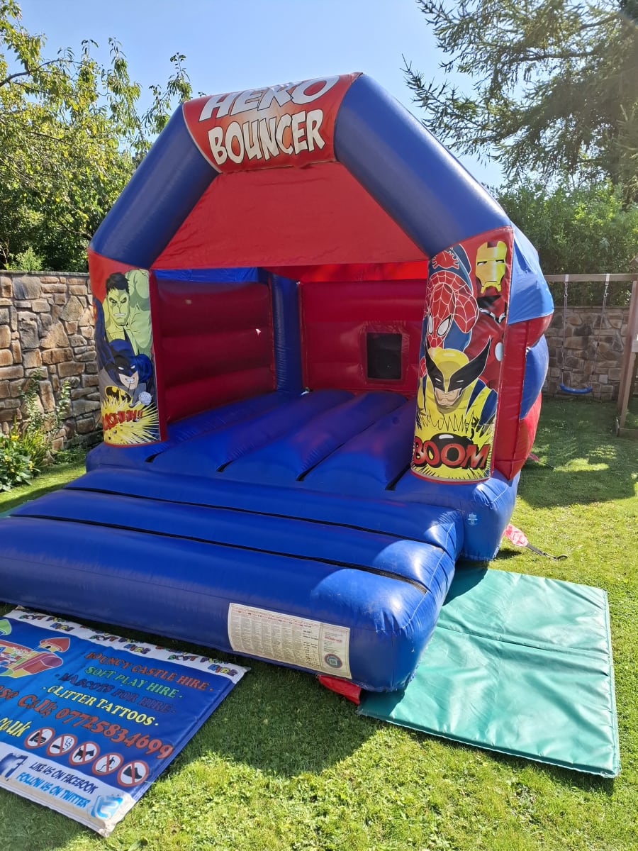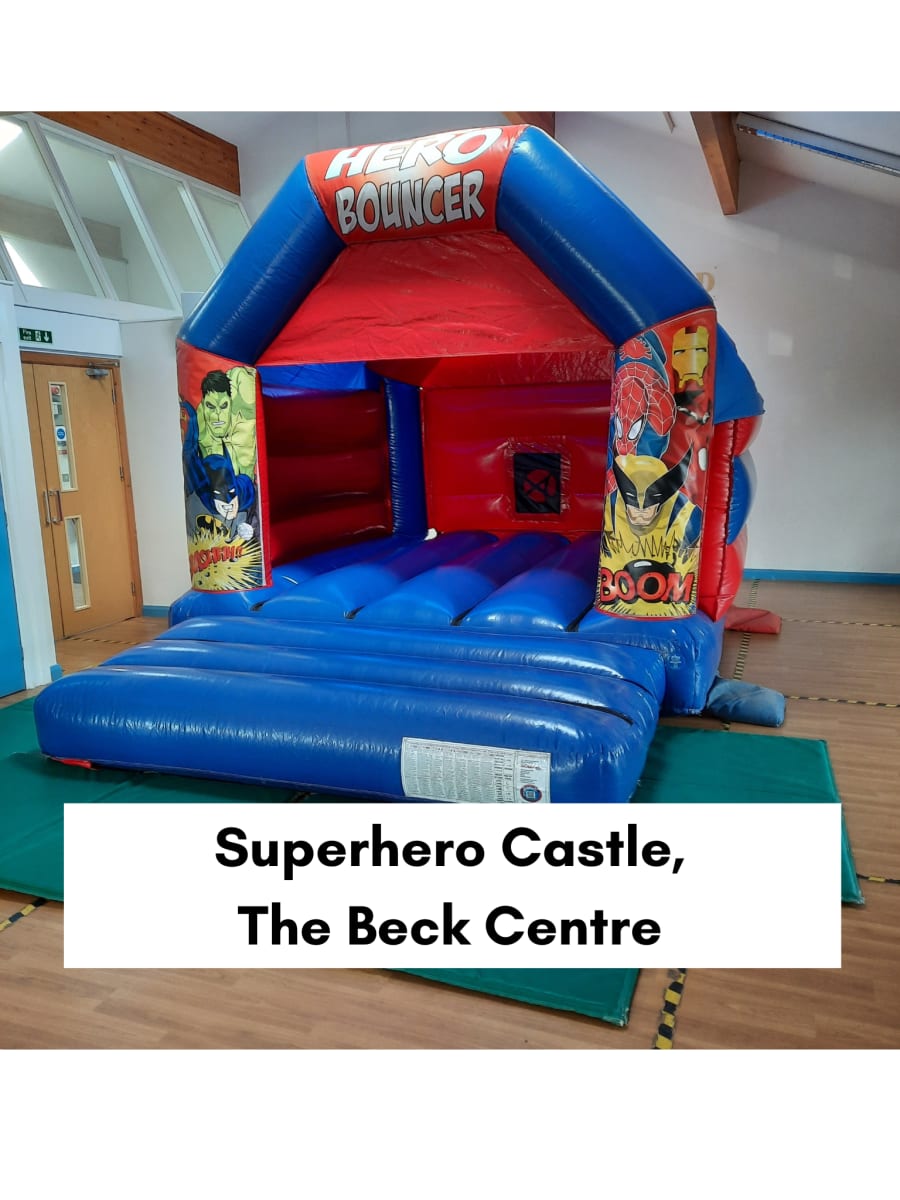 Book the Red and Blue Superhero Castle today and watch your little heroes soar through their party in style!