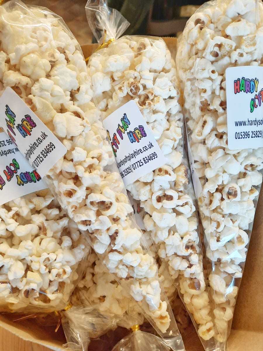 These popcorn cones are a great alternative to sweets. A party bag is a must, but they can be expensive and a hassle to put together. These popcorn cones take the hassle out of it and taste fantastic. We have our own popcorn machine to 'pop' our own kernels fresh for your event. We coat them in a caramel glaze to give them a beautiful sweet flavour. These cones are £1.25 each, and the price below is based in 20 guests. If you would like more, or less of these just make a note on the booking form and I will amend the invoice. Alternatively, please get in touch, or give me a ring on 077258 34699.
