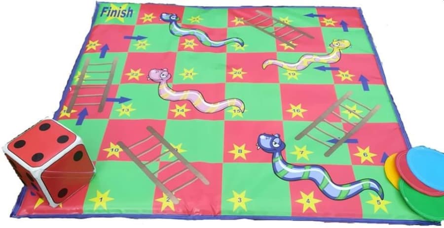 Bring classic family fun to your event with our Big Snakes and Ladders game! Perfect for children and adults alike, this oversized version of the beloved board game lets everyone join in the excitement of racing to the last square—while avoiding those pesky snakes along the way.