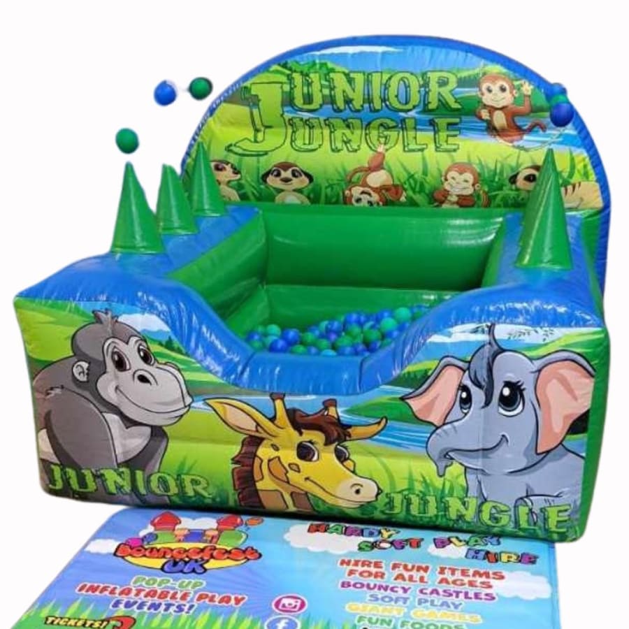 Dive into a world of fun with the Jungle Ball Pool, a vibrant and interactive inflatable designed to entertain toddlers and young children. Perfect for birthday parties, christenings, or corporate events, this jungle-themed ball pool promises hours of excitement and sensory play.