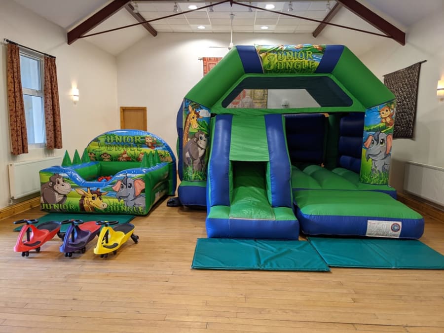 *Please note: The bouncy castles listed below should fit this venue, based on current information. If booking multiple items or a package, please double-check hall/space dimensions to ensure everything fits.