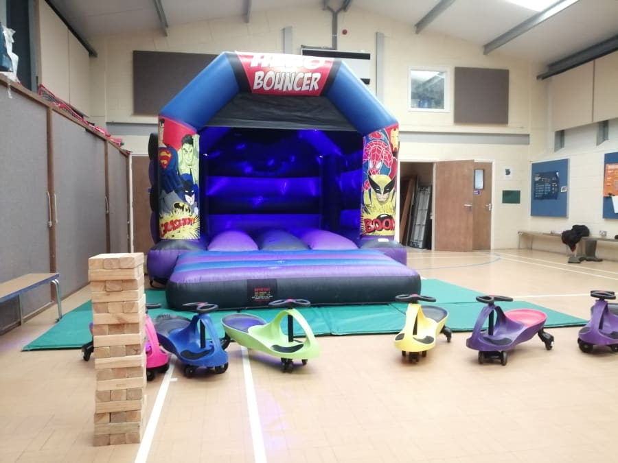 *Please note: The bouncy castles listed below should fit this venue, based on current information. If booking multiple items or a package, please double-check hall/space dimensions to ensure everything fits.