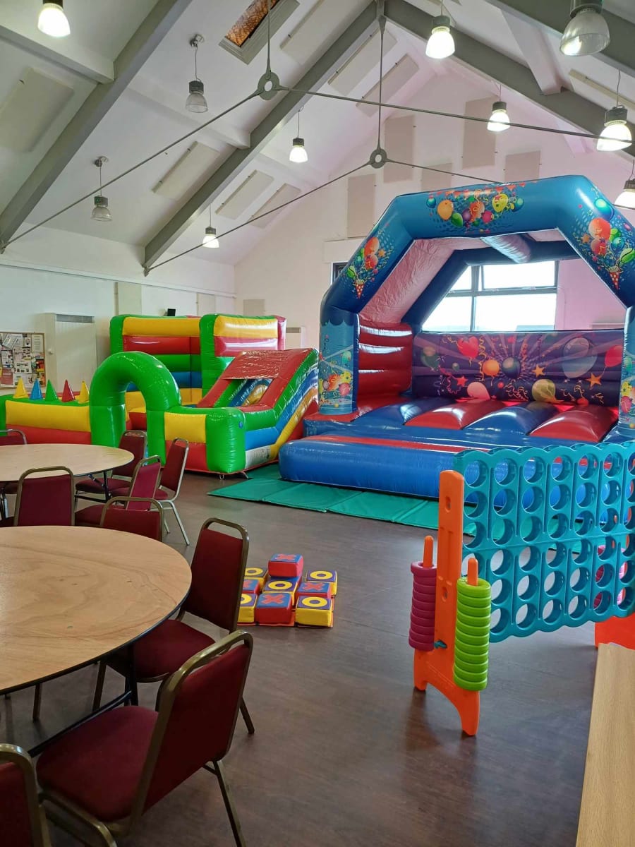 *Please note: The bouncy castles listed below should fit the main hall at this venue, based on current information. If booking multiple items or a package, please double-check hall/space dimensions to ensure everything fits.