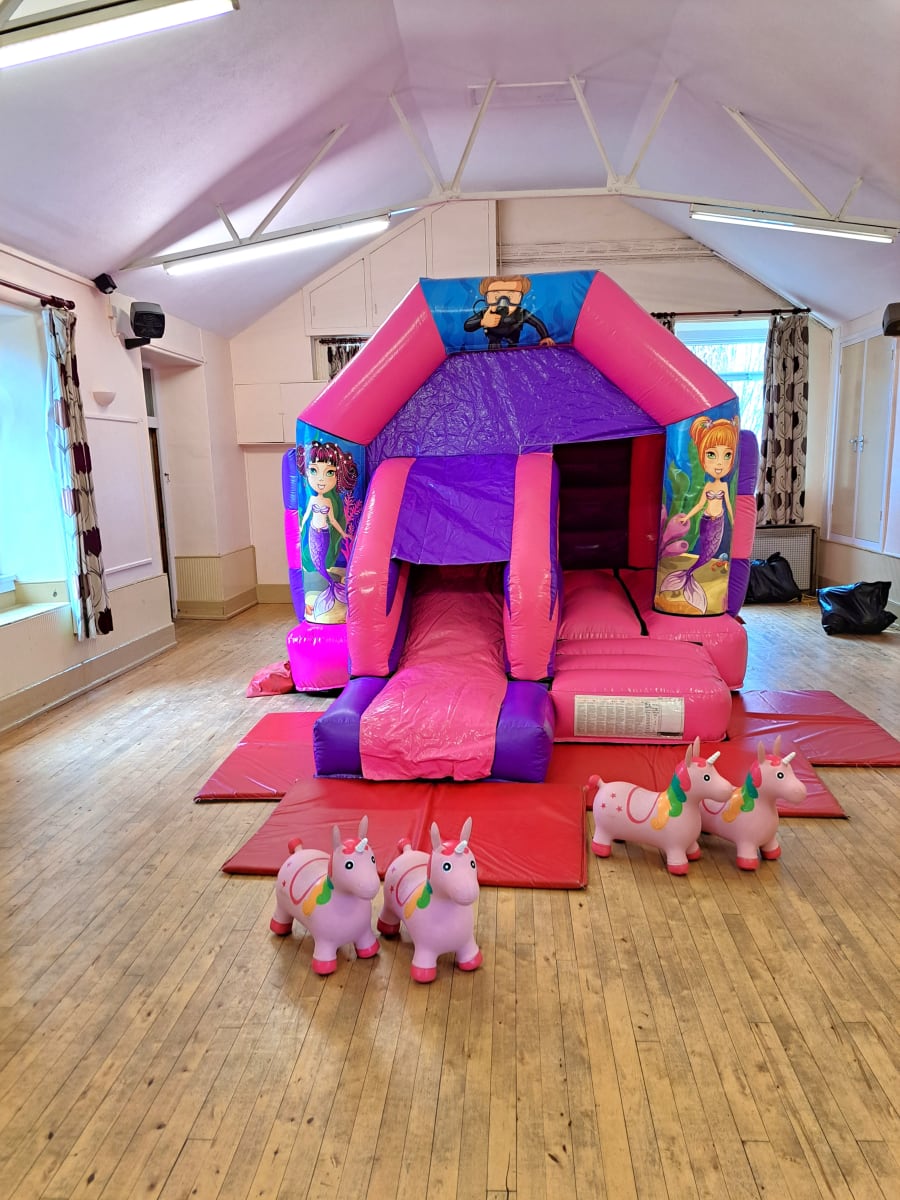 *Please note: The bouncy castles listed below should fit this venue, based on current information. If booking multiple items or a package, please double-check hall/space dimensions to ensure everything fits.