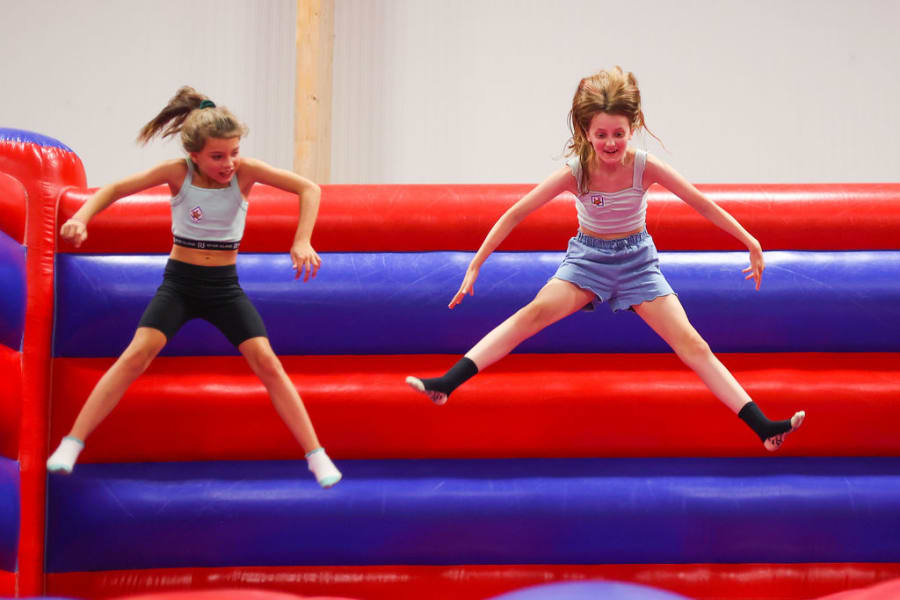 - 100ft Assault Course – A gigantic four-section inflatable challenge with hurdles, whackers, biff and bash posts, mini humps, crawl-through tunnels, and a climbing wall leading to a thrilling 10ft slide.