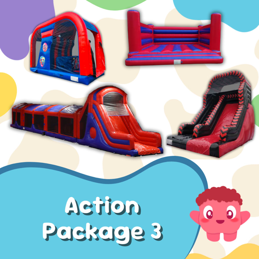 If you're planning a large-scale event and want to keep a big group of children, teens or adults entertained, Action Package 3 is the ultimate choice! Packed with massive inflatables and high-energy challenges, this package creates an interactive entertainment arena that’s perfect for weddings, corporate fun days, charity fundraisers, and school events.