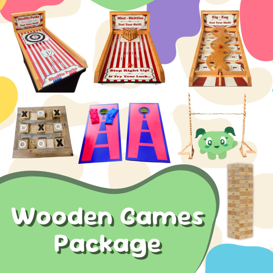 This 'Wooden Games' package provides you 7 different fun games at any event. This is ideal for a private party, a team building event, a Christmas treat for your staff or to entertain your guests at your wedding.