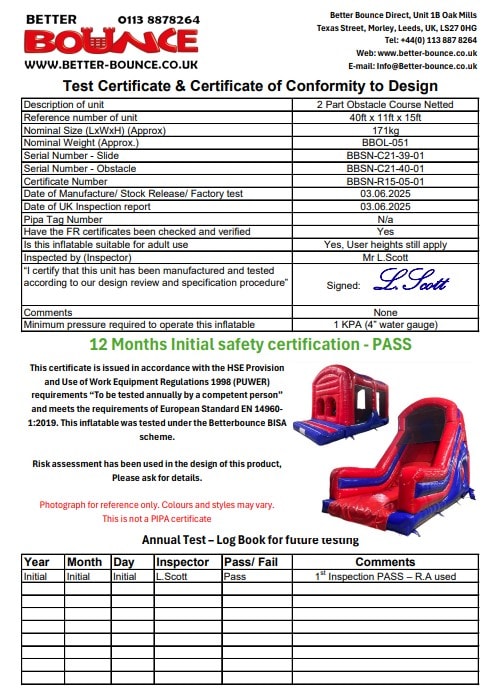 Safe and Hassle-Free Setup: Our friendly team manages setup and takedown, following HSE safety guidelines. All electrical equipment is PAT-tested, and our inflatables undergo annual independent testing (like an MOT) to ensure top standards. With RPII-certified operators and attendants, plus regular cleaning and maintenance, we guarantee a smooth and worry-free experience.