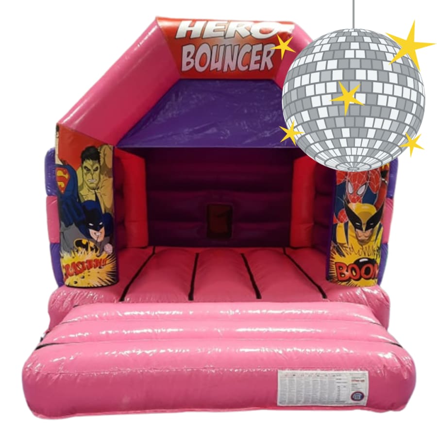 Planning a superhero themed party for a girls birthday or a Christening celebration? This Bouncy Castle features your favourite superhero characters making it ideal for a party. Featuring a good sized bouncing area, it will provide hours of entertainment. This castle features a Bluetooth speaker and disco light inside.